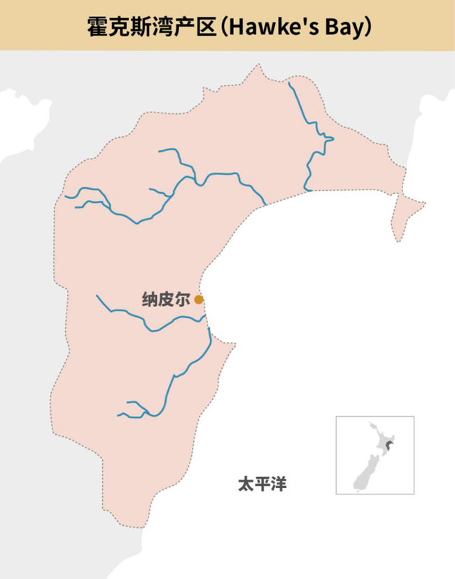 霍克斯灣的葡萄園主要沿著四大河流的河道向內(nèi)陸延伸,集中在沿海地區(qū)、山坡、沖積平原、河谷和霍克斯灣中部。