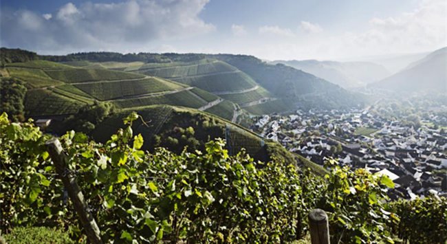 中部萊茵產(chǎn)區(qū)風(fēng)景優(yōu)美,葡萄園多分布在地勢(shì)陡峭的梯田上,種植有雷司令、米勒-圖高和黑皮諾等多種葡萄品種。這里的雷司令酒款香氣馥郁,酸度充沛,帶有迷人的礦物質(zhì)氣息。