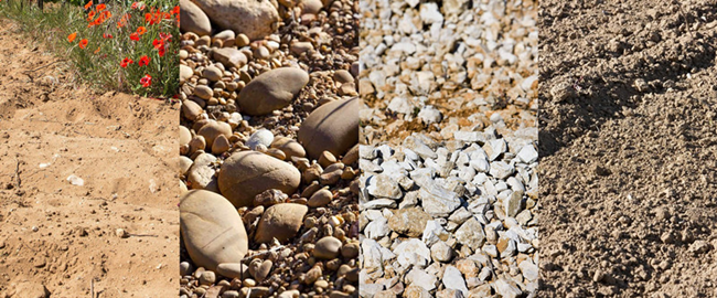 羅納河谷葡萄園坐落于中央高原(Massif Central)與阿爾卑斯山(Alps)之間,北邊被中央高原古老的噴發(fā)巖所覆蓋,南邊是中生代(侏羅紀(jì)和白堊紀(jì))的海洋沉積土壤,以石灰?guī)r為主。第三紀(jì)末(約2400萬年至700萬年前),阿爾卑斯山的形成,使得河谷崩裂,將高原分成兩半。地中海的海水涌進(jìn)來,用巖屑填滿了河谷。從第四紀(jì)開始,河谷的坡面形成了很多沖積和崩積而來的階地。如今,羅納河谷葡萄園的風(fēng)土主要由四種巖石構(gòu)成:花崗巖、沙土、石灰?guī)r和黏土。這些母巖對(duì)葡萄樹根部保持適宜的水分起到了關(guān)鍵作用,為這里的葡萄酒帶來結(jié)構(gòu)與芳香。