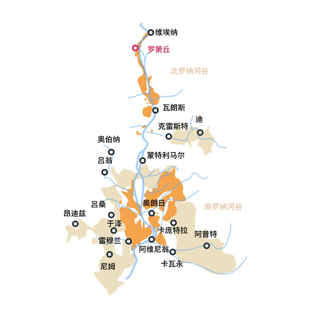 羅第丘冬季溫和,夏季炎熱,降雨相對(duì)規(guī)律。“風(fēng)”對(duì)羅第丘葡萄樹的生長有著至關(guān)重要的影響——山坡上的葡萄園一般朝向南或東南方向,這種朝向既能使葡萄園抵御寒冷的北風(fēng),又能讓葡萄樹生長在溫暖干燥的南風(fēng)中,促進(jìn)果實(shí)成熟的同時(shí)保護(hù)葡萄樹免受病害威脅。