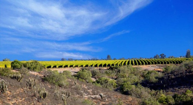 明朗如鏡的天空,映襯著連綿起伏的山丘,偶爾可見(jiàn)仙人掌、山楂樹和其它一些低矮的灌木叢,而在山谷之地,卻分布著成片的葡萄園,綠色的葡萄葉、黃色的土地與藍(lán)色的天空交相輝映,這就是阿塔卡馬沙漠(Atacama Desert)南部的風(fēng)光,著名的利馬里谷(Limari Valley...