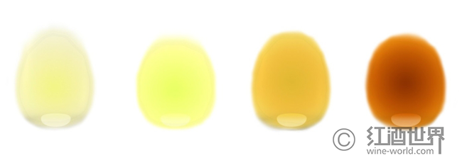 白葡萄酒陳年后的酒液顏色變化