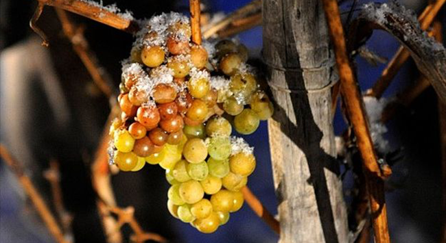 就如許多發(fā)明一樣,冰酒的誕生也是一次意外。據(jù)說在十八世紀末的德國,葡萄還沒來得及采收,就遭遇了嚴寒天氣,釀酒師們被迫用結冰的葡萄來釀造葡萄酒,結果卻意外得到了香氣純凈馥郁、口感甜蜜誘人的佳釀。采用結冰葡萄釀酒的方法便由此在德國逐漸流傳開來。