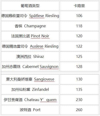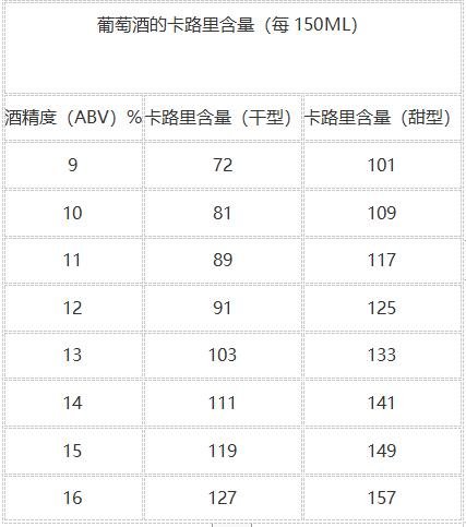 葡萄酒的熱量與其所含的酒精度息息相關(guān)(參考下表),因此不能簡單地用白葡萄酒、紅葡萄酒來做比較。