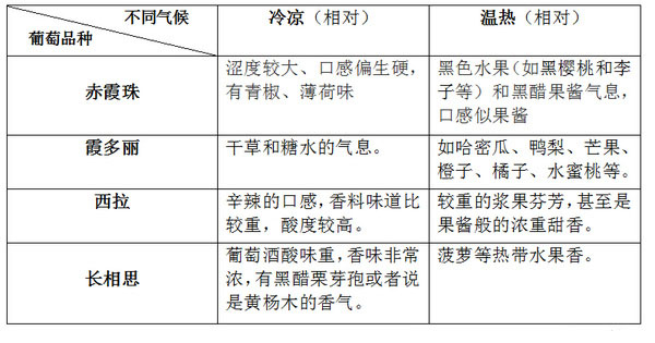 每個品種的葡萄的果粒大小、果皮厚度、色澤、色素量和密度,所含單寧的量及質(zhì)量,風味成分的構(gòu)成,熟成難易度,土壤和氣候的適應(yīng)性等,這些因素的不同,將造成所釀葡萄酒的香味、酸味和澀味以及口感、酸度和色澤等發(fā)生變化。