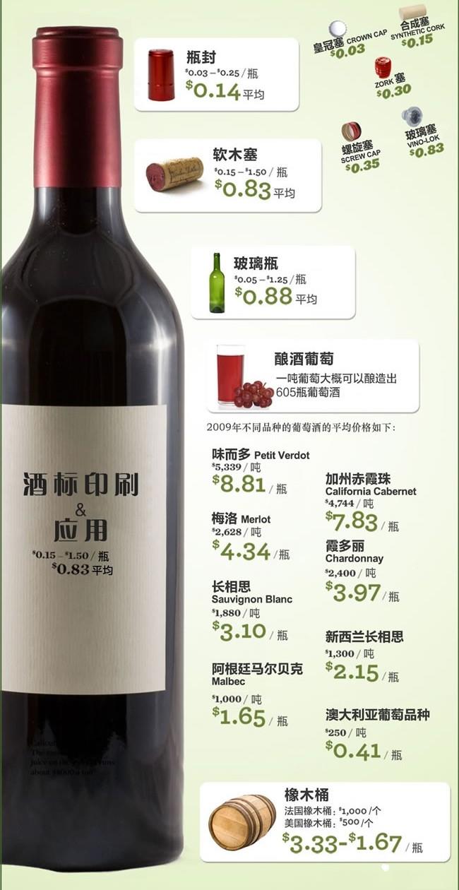 一般來說,性價比高的葡萄酒是指其價格絕大部分來源于生產(chǎn)成本的葡萄酒。葡萄酒的生產(chǎn)成本包括哪些呢?下面的圖片詳細(xì)地介紹了一瓶葡萄酒的各個部分分別需要多少成本。