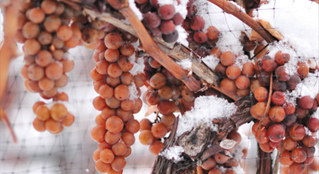 釀制冰酒的葡萄成熟度應(yīng)至少達(dá)到BA的水平,且需在果實中的水分已結(jié)冰的狀態(tài)下人工采摘和壓榨,以獲得糖分、酸度和風(fēng)味物質(zhì)高度濃縮的葡萄汁。這種情況下壓制出來的果汁非常少,因此冰酒產(chǎn)量極低,平時釀造一瓶酒的等量葡萄或許僅能釀制一杯冰酒。因?qū)μ鞖鈼l件要求高,冰酒同樣不是每一年都能釀造的。