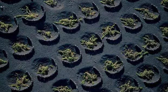 ▲西班牙蘭薩羅特島,種在黑色火山土里的葡萄藤