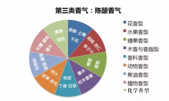簡(jiǎn)單來說,如果你品鑒一瓶葡萄酒時(shí),聞到水果的味道,那就是一類香氣;如果聞到奶油、甜點(diǎn)類的香氣那就是二類香氣;三類香氣則更加復(fù)雜與廣泛,花香、糖果香、動(dòng)物香型都是三類香氣的分支,這下你直到這三類香氣是如何區(qū)分的了么?