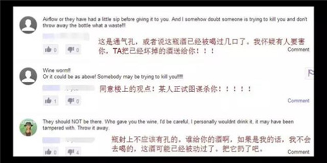 然后,有些網(wǎng)友就炸了,認為這酒已經(jīng)被人動過了,甚至有人認為這是謀殺!