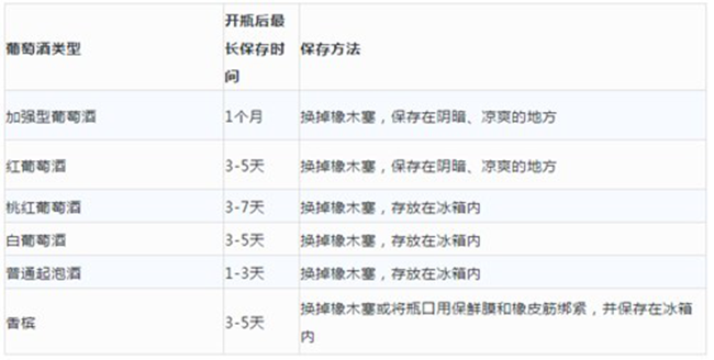 不同類型葡萄酒開瓶后最長保存時間