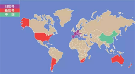 舊世界 ( Old World ) 所謂的舊世界,通常泛指歐洲國家。不過,舊世界的起源可以追溯到羅馬帝國時期,葡萄酒開始釀造的時代。從那時開始,舊世界的葡萄酒就由自家釀造的葡萄酒發(fā)展到現(xiàn)今的龐大規(guī)模。 舊世界的產(chǎn)區(qū)包括:意大利,法國,西班牙,葡萄牙,澳洲...
