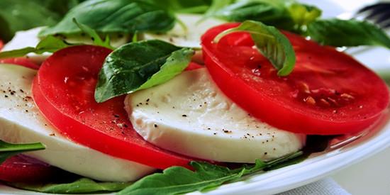 卡普瑞沙拉(Insalata Caprese)的制作非常簡(jiǎn)單。只需要準(zhǔn)備好水牛芝士(buffalo mozzarella)、羅勒(basil)、西紅柿和橄欖油即可。第一步先將西紅柿切片,將水牛芝士也切成差不多的薄片;第二步將西紅柿片和芝士片交替落成“三明治”,然后撒上羅勒;最后將橄欖油澆在西紅柿芝士上,簡(jiǎn)單又美味的卡普瑞沙拉就做好了。