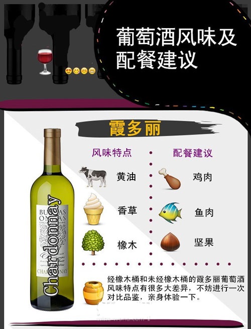東莞藍(lán)菲城堡葡萄酒代理商用6張圖片列出最主要的6種葡萄酒,并簡要說明相應(yīng)的風(fēng)格特點(diǎn)和配餐建議。比如稱得上“千面女郎”的霞多麗葡萄酒,即可以清新脆爽,也可以豐滿順滑,而決定其風(fēng)格的,除品種本身外,還有釀酒工藝,尤其是橡木桶的使用?!?strong>