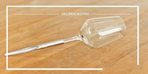這款紅酒杯的上端設(shè)計和大家日常使用的紅酒杯相同,只不過在下端進行了創(chuàng)新設(shè)計。在酒杯的底部,并不是傳統(tǒng)底座式設(shè)計,而是采用了類似于針尖的形狀。