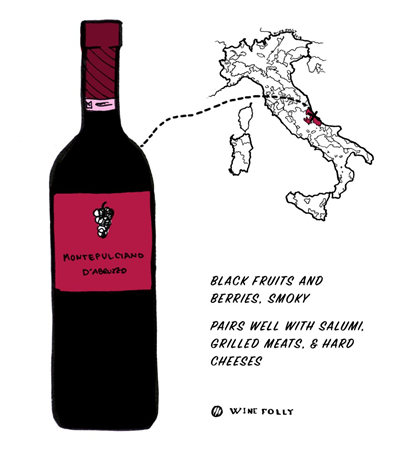 品質(zhì)較高的蒙特布查諾葡萄酒顏色深邃,具有濃郁的黑色漿果氣息,單寧成熟且強(qiáng)勁,因此也常被用來與其他口感比較柔和的葡萄酒混釀。
