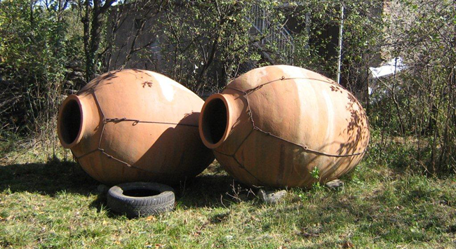 陶罐是一種非常古老的釀造容器,用陶罐陳釀的葡萄酒充滿了復(fù)古氣息,如今鮮少有酒莊使用陶罐,但這也不妨礙人們了解它的步伐。如今最常用于釀造葡萄酒的陶罐有三種,分別是羅馬雙耳瓶(Roman Amphora)、格魯吉亞的奎弗瑞罐(Qvevri)以及西班牙的迪那哈罐(Tinaja)。其中,羅馬雙耳瓶是三種陶罐中使用率最高的一種,它最顯著的特征是細(xì)窄的瓶身、尖底和瓶子上端的一對(duì)握把;奎弗瑞罐的體積十分巨大,直立時(shí)高度可以超過(guò)正常成年男性的身高,如今,格魯吉亞的葡萄酒產(chǎn)區(qū)仍在使用這類陶罐釀造葡萄酒;迪那哈罐是一種較為罕見(jiàn)的橢圓形陶罐,它的罐口與罐底都十分狹窄,在傳統(tǒng)上多用于儲(chǔ)存葡萄酒。