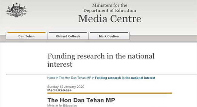 聯(lián)邦教育部官網(wǎng)12日?qǐng)?bào)道,聯(lián)邦教育部長(zhǎng)特翰(Dan Tehan)宣布,政府將通過(guò)澳洲研究委員會(huì)(ARC)為20個(gè)新的研究項(xiàng)目提供950萬(wàn)元的資金。獲資助的項(xiàng)目包括:蒙納士大學(xué)提出的調(diào)查確定葡萄酒地理標(biāo)志所需的標(biāo)準(zhǔn)、證據(jù)和程序,這些標(biāo)準(zhǔn)、證據(jù)和程序用于貿(mào)易協(xié)定和法律糾紛。澳洲天主教大學(xué)提出的開(kāi)發(fā)一個(gè)在線工具,為數(shù)字社會(huì)中的兒童識(shí)別和分享最佳實(shí)踐,包括數(shù)字媒體生產(chǎn)、網(wǎng)絡(luò)安全教育、數(shù)字游戲和數(shù)字育兒等領(lǐng)域的新資源、材料和項(xiàng)目。