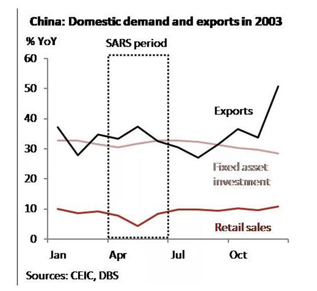 星展集團(tuán)(DBS Group)的報(bào)告指出,2003年SARS疫情爆發(fā)期間零售銷售遭到很大的打擊,但疫情過后短時(shí)間內(nèi)消費(fèi)就有很大的反彈??梢灶A(yù)見,新冠疫情結(jié)束之后,經(jīng)營良好的企業(yè)將趁著消費(fèi)反彈的大勢蠶食原本屬于健康度不佳的企業(yè)的份額。