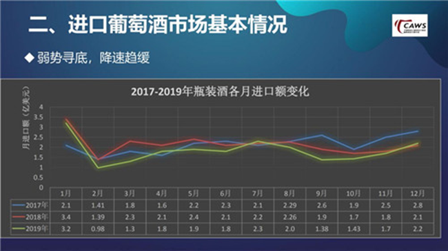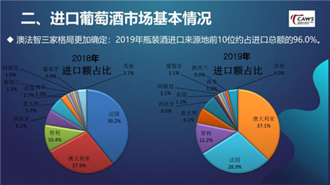 具體到葡萄酒行業(yè),在2019年中國進(jìn)口葡萄酒總額為24.3億美元,同比下降14.8%。從數(shù)據(jù)上來看,當(dāng)前進(jìn)口葡萄酒市場(chǎng)主要表現(xiàn)為以下5個(gè)方面:1.進(jìn)口葡萄酒市場(chǎng)弱勢(shì)尋底,降速趨緩2.頭部企業(yè)整體表現(xiàn)較穩(wěn)定;3.進(jìn)口來源地減少,澳、法、智三家格局更加確定;4.進(jìn)口葡萄酒企業(yè)數(shù)量繼續(xù)增加;5.市場(chǎng)信息仍不對(duì)稱,效率和成本優(yōu)化空間較大。