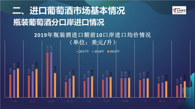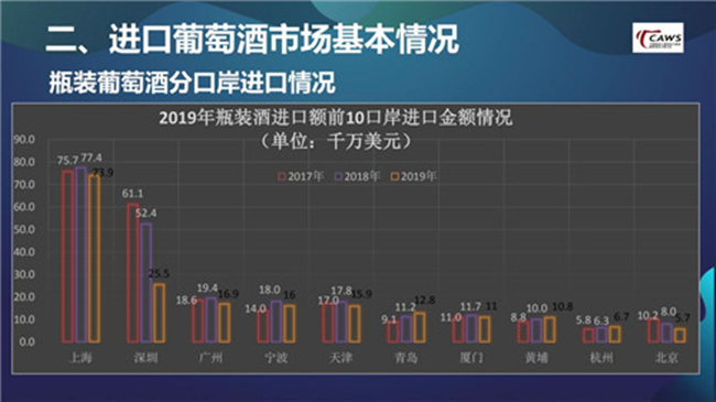 在仔細(xì)分析口岸數(shù)據(jù)后就會(huì)發(fā)現(xiàn),深圳由2018年的5.24億美元,迅速下滑到2019年的2.55億美元。我認(rèn)為這與2018年,深圳口岸由于種種原因進(jìn)口了大量的高端酒、奢侈酒有關(guān)。進(jìn)一步去想,2019年整個(gè)大盤下跌15%,受高端酒、奢侈酒的影響較大,整個(gè)市場(chǎng)其實(shí)并沒有受到過多沖擊。