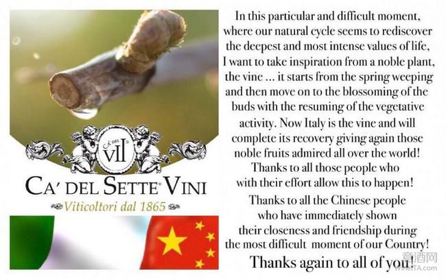 危難見(jiàn)真情。中國(guó)抗擊新冠病毒疫情的戰(zhàn)役剛接近尾聲,就向意大利無(wú)私的伸出援手,派出精英醫(yī)療隊(duì)、援助醫(yī)療防疫物資。意大利酒莊通過(guò)海報(bào)、宣傳,表達(dá)對(duì)中國(guó)人民的感激之情。