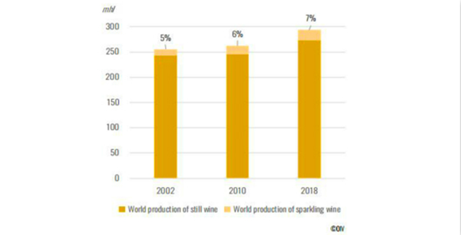 在過去的二十年里,由于全球高需求,起泡葡萄酒市場得以快速擴(kuò)張。2018年,全球起泡葡萄酒的產(chǎn)量首次突破20億升,較2002年增加了57%。