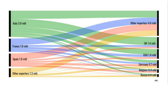 起泡葡萄酒主要出口國(按數(shù)量)