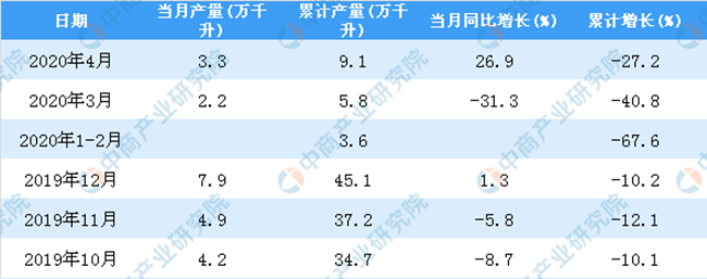 2019-2020年4月全國葡萄酒產(chǎn)量統(tǒng)計(jì)數(shù)據(jù)