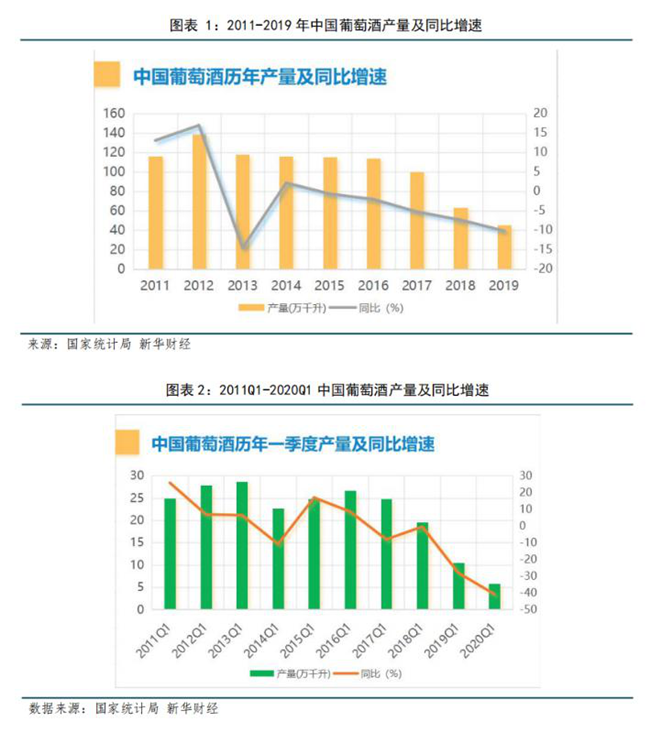 1、國產(chǎn)葡萄酒受疫情影響下滑加劇,2020Q2開啟弱復(fù)蘇