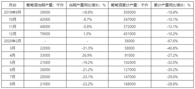 近一年中國(guó)葡萄酒產(chǎn)量統(tǒng)計(jì)表