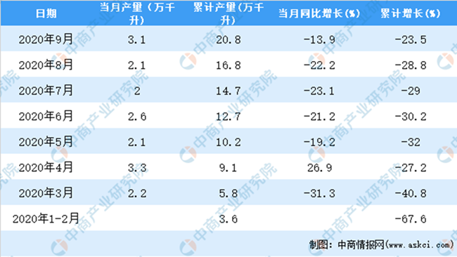 2020年1-9月全國葡萄酒產量統(tǒng)計