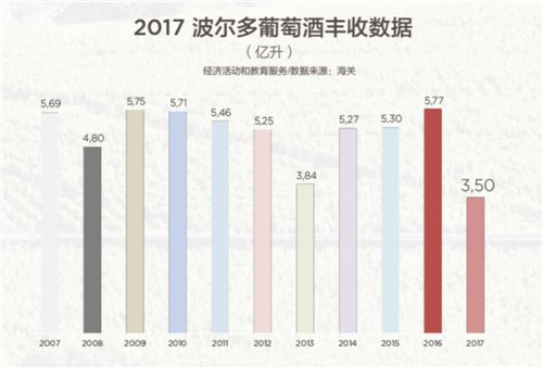 2017波爾多葡萄酒的年份報告正式出爐,報告顯示,盡管2017對于葡萄的生長來說天氣惡劣,整體葡萄豐收3.5億公升,相比2106年,整體產(chǎn)量明顯下降。