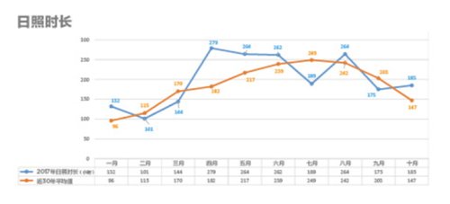 一月 多數(shù)時間氣候干燥,日照充盈,降雨量不夠充沛。日照時間相較于季度平均值多出37小時。