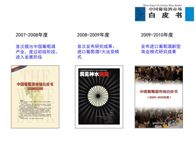 中國(guó)葡萄酒市場(chǎng)白皮書(shū)發(fā)布會(huì),堅(jiān)持立體解讀中國(guó)市場(chǎng),智慧服務(wù)中外酒商的宗旨,在社會(huì)各界的大力支持下,自2010年成都糖酒會(huì)首次舉辦以來(lái),業(yè)已經(jīng)過(guò)十年發(fā)布,已成為中國(guó)葡萄酒市場(chǎng)分析與發(fā)布的知名品牌。被譽(yù)為行業(yè)發(fā)展、企業(yè)決策的參考書(shū)。
