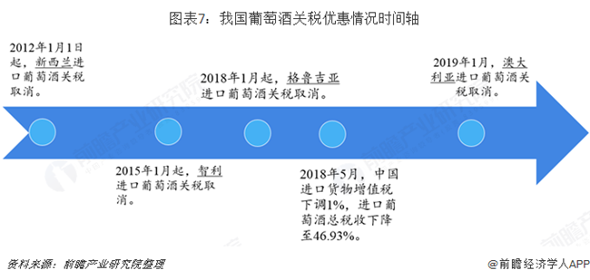 我國分別于2012年和2015年先后對新西蘭和智利進(jìn)口葡萄酒實(shí)施零關(guān)稅。2018年起格魯吉亞進(jìn)口葡萄酒也加入零關(guān)稅隊(duì)伍。根據(jù)中澳自貿(mào)協(xié)定,2019年1月起,我國進(jìn)口澳大利亞葡萄酒的關(guān)稅降至零。
