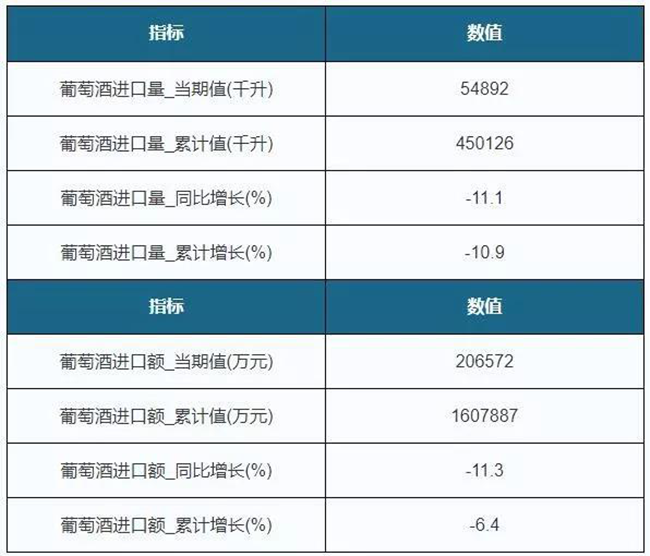 2019年8月我國葡萄酒進(jìn)口量為54892千升,同比下降11.1%,進(jìn)口金額為206572萬元,同比下降11.3%;1-8月進(jìn)口量為450126千升,累計下降10.9%,進(jìn)口金額為1607887萬元,累計下降6.4%。