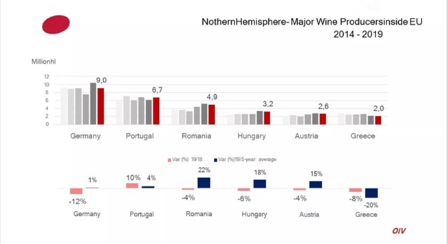 OIV的數(shù)據(jù)來(lái)自28個(gè)國(guó)家,占全球葡萄酒產(chǎn)量的85%。