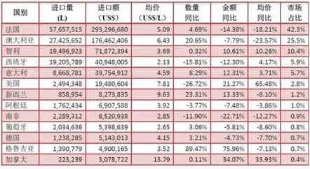 2017年1-4月進口葡萄酒數(shù)據(jù):略微下降