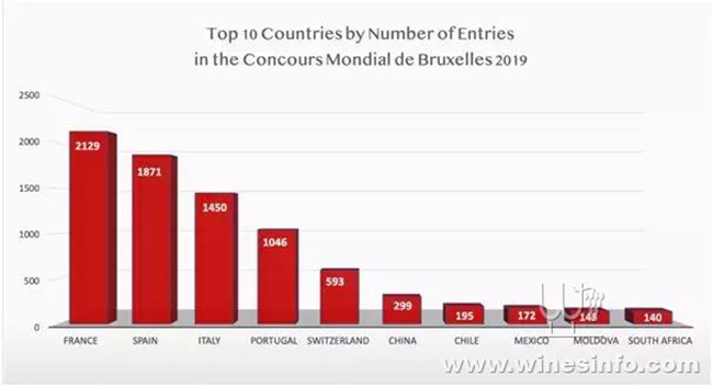 2019比利時布魯塞爾國際葡萄酒大獎賽前十大參賽國排名