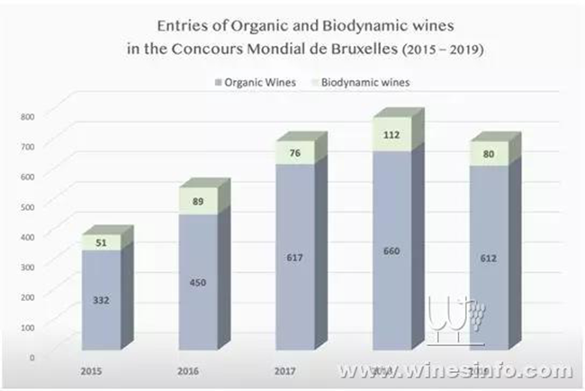 2019年,意大利(182款)、西班牙(151款)、法國(121款)、中國(53款)成為前四大有機(jī)葡萄酒參賽國(共24個國家選送了有機(jī)葡萄酒)。