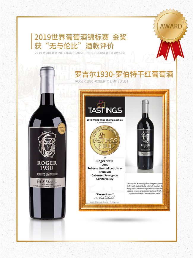 安智利雅家族酒莊旗下Roger1930系列產(chǎn)品是該酒莊現(xiàn)任莊主Roberto Echeverria為紀念他的曾曾祖父——羅伯特家族第一任莊主、酒莊創(chuàng)始人Roger先生(Roger piffre de Vauban羅吉爾·皮夫拉·德·沃班)誕辰100周年時,推出以曾曾祖父Roger先生名字命名的限量紀念版產(chǎn)品。Roger1930系列葡萄酒,作為酒莊珍藏限量紀念版產(chǎn)品,采用酒莊最頂級的葡萄,莊主親釀,人工采摘,手工蠟封,橡木桶陳年12-24個月,每年限量2000瓶。該系列產(chǎn)品在智利國內(nèi)基本不對外銷售,只作為酒莊招待貴賓、禮送親朋的佳釀。