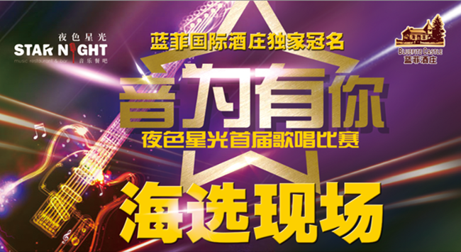 由東莞市藍(lán)菲酒業(yè)有限公司獨(dú)家冠名的,夜色星光音樂餐吧主辦的《音為有你》夜色星光首屆歌唱大賽全面啟動(dòng),初賽于8月9日-11日在廣州大道北佳潤(rùn)廣場(chǎng)盛大舉行!來自五湖四海的100多個(gè)音樂人“音”為愛好而相聚在一起,拿起麥克風(fēng),唱歌給你聽!在夜色星光中用音樂發(fā)聲!這夜,舞臺(tái)為他們而設(shè),我們,為他們而來。