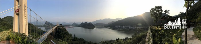緊接著藍(lán)菲團(tuán)隊(duì)乘坐山體垂直觀光電梯,平布青云,扶遙直上,到達(dá)觀光電梯空中平臺(tái),一起俯瞰1680畝天鵝湖畔。我們相繼踏上擁有廣東省內(nèi)最長、世界最長喀斯特地貌湖景玻璃橋美稱的天宮玻璃橋,輕松就能將整個(gè)湖光山色盡收眼眸,翠綠蔥郁的北江峰林重巒疊嶂,天鵝湖依山傍水波光瀲滟,一覽無遺的自然美景凝聚著和諧氛圍,眼前開豁的視野放松了我們的心情。
